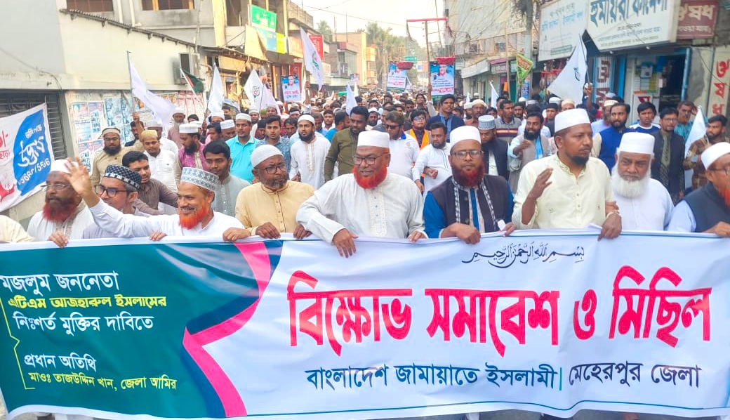 বাংলাদেশ জামায়াত ইসলামীর সহকারী সেক্রেটারী জেনারেল এটিএম আজহারুল ইসলামের নিঃশর্ত মুক্তি দাবিতে মেহেরপুরে বিক্ষোভ সমাবেশ ও মিছিল অনুষ্ঠিত হয়।